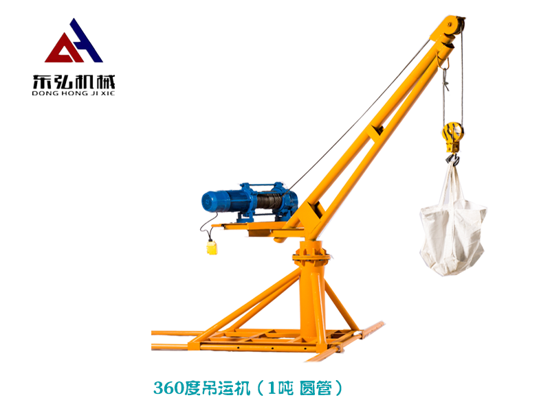 360度是外吊运机,本款为1吨级,圆管型吊机,搭配380V工业电源电机较多,吊运高度为30-100米内,特别适合建筑工地高层吊运砂石灰,同样适用于装潢公司、建筑垃圾、施工手脚架、工地物料等的吊运,也适合工厂生产材料吊运,成品出入库,维修班设备维修等。